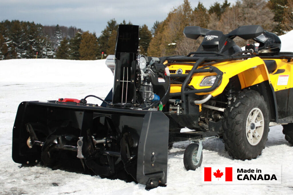 With 14 HP Vanguard engine and equipped with the electric chute and rotation kit that allows you to have control from the comfort of your seat, this snowblower is perfect for commercial and semi-commercial applications. Quick and simple mount on most major brands of ATV & UTV in less than 5 minutes.