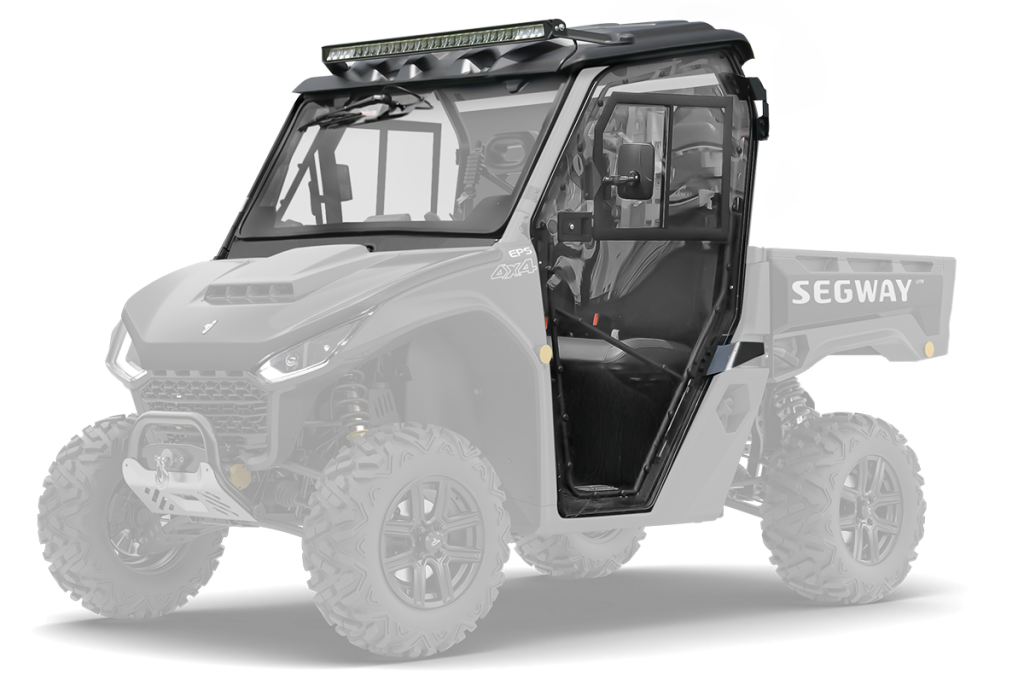 Heated Segway Fugleman UT6 cab with polycarbonate doors, safety glass windscreen with wiper and washer, safety glass sliding side windows, rear panel from transparent UV protected abrasion resistant polycarbonate, steel roof with noise reduction upholstery, hot-water heating