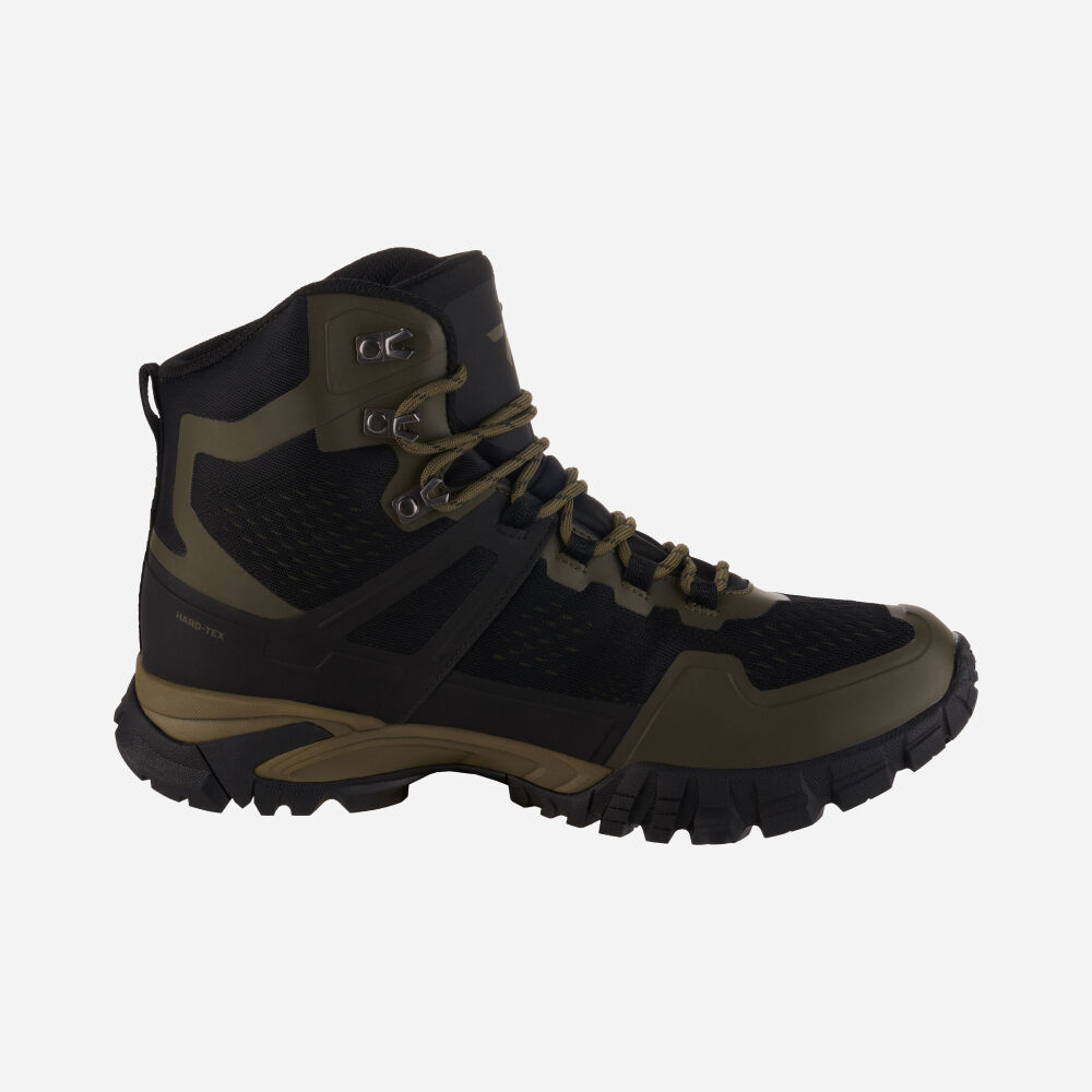 Reliable choice for anyone seeking versatile outdoor footwear with an optimal balance of durability, comfort, and protection. The HARD-TEX® membrane ensures waterproofness and breathability to keep feet dry in rainy or damp conditions, while the breathable mesh upper wicks moisture away. Polyurethane reinforcements combined with a higher (high-cut) profile provide firm ankle support and secure footing on rocky or muddy ground. A phylon midsole cushions impacts for all-day comfort, and the rubber outsole with pronounced lugs offers dependable traction on both dry and wet surfaces. A practical heel pull loop makes on/off easier. Ideal for hiking, trekking, and other outdoor activities in demanding environments.