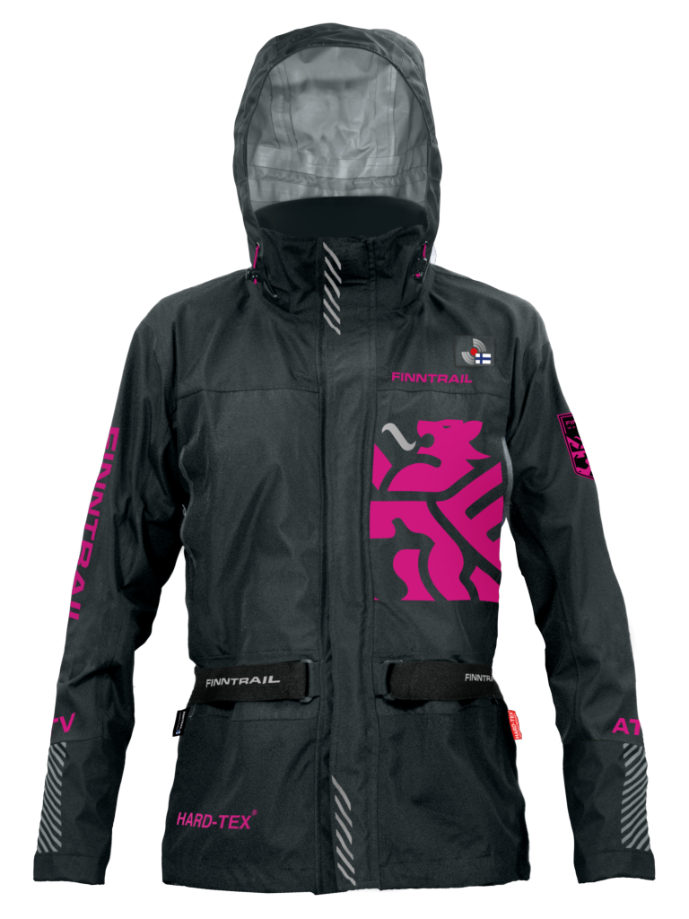 Womens ATV & UTV jacket, waterproof, breathable, three-layer fabric with a HARD-TEX membrane, Teflon™ Fabric Coating, magnetic flap instead of Velcro, waterproof wrist cuffs, 2 inside pockets, collar with a fleece trim, 3M reflective elements, walkie-talkie shoulder fastener, detechable hood