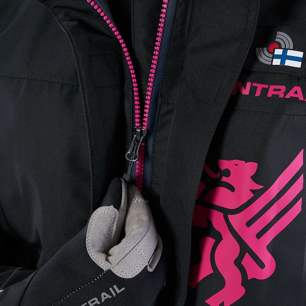 Waterproof womens´ ATV jacket with high comfort and perfect fit. Durable 3-layer fabric with a HARD-TEX membrane ensures the highest protection against water and mud. Comfortable collar with a fleece trim, detachable and adjustable hood, two inside pockets with waterproof zippers. Thanks to the magnetic flap fastening system, the main zipper is mud-resistant. Elastic wrist cuffs prevent direct ingress of water. All seams are taped, providing 100% leakage protection.