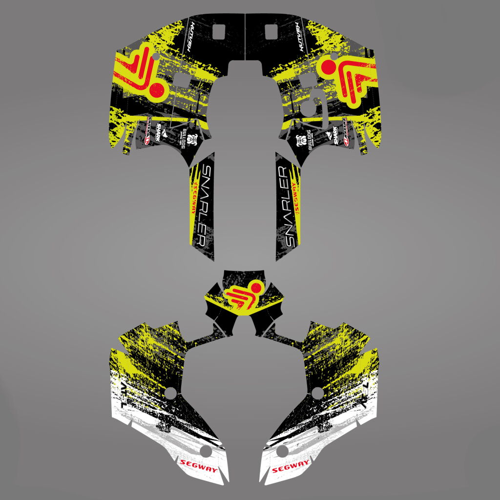 Graphic set of stickers for Segway AT5 quad bike. Made of patented material that ensures quality at all stages. The matt lamination extends the life and ensures colour fastness.
