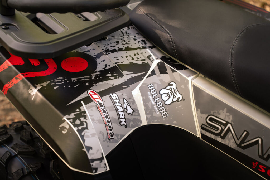 Graphic set of stickers for Segway AT5 quad bike. Made of patented material that ensures quality at all stages. The matt lamination extends the life and ensures colour fastness.