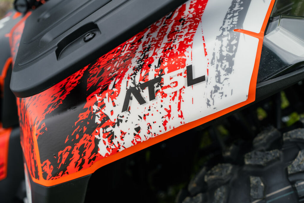 Graphic set of stickers for Segway AT5 quad bike. Made of patented material that ensures quality at all stages. The matt lamination extends the life and ensures colour fastness.