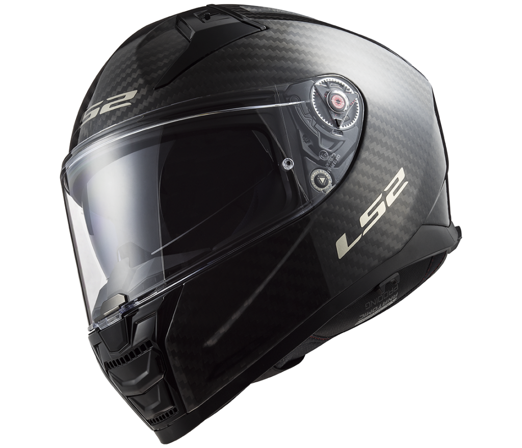 Technically advanced high-end carbon sport/touring full-face helmet, integrated sun visor, lightweight Carbon fiber shell, Anti-scratch / Anti-UV visor, Dynamic Flow-through ventilation, breath deflector, chin curtain, Emergency Release System, removable and washable liner, Pinlock 70 Max Vision included, 1300g