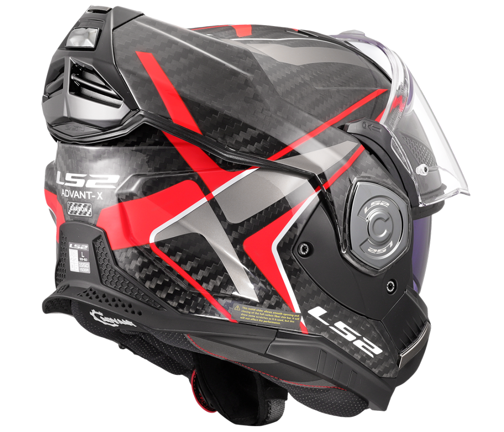 The only full carbon convertible helmet on the market! Advant-X Carbon convertible helmet is improved successor of the most successful ad best-selling LS2 Valiant II helmet. Equipped with a sun visor, Advant-X Carbon helmet is designed for medium and long distance touring, everyday and city riding. Helmet with improved ergonomics and redesigned 180-degree rotation mechanism offers superior comfort, modern technologies, advanced features and attractive design. Lightweight carbon shell provides great impact protection. Clear scratch- and UV-resistant visor is quickly removable without the need for tools. Efficient ventilation with adjustable intake ports. Hypoallergenic X-Static silver-containing interior is completely removable and washable. Extremely light weight, only 1550 g. The helmet has dual P/J ECE 22.06 homologation. Free Pinlock 70 Max Vision foil included.