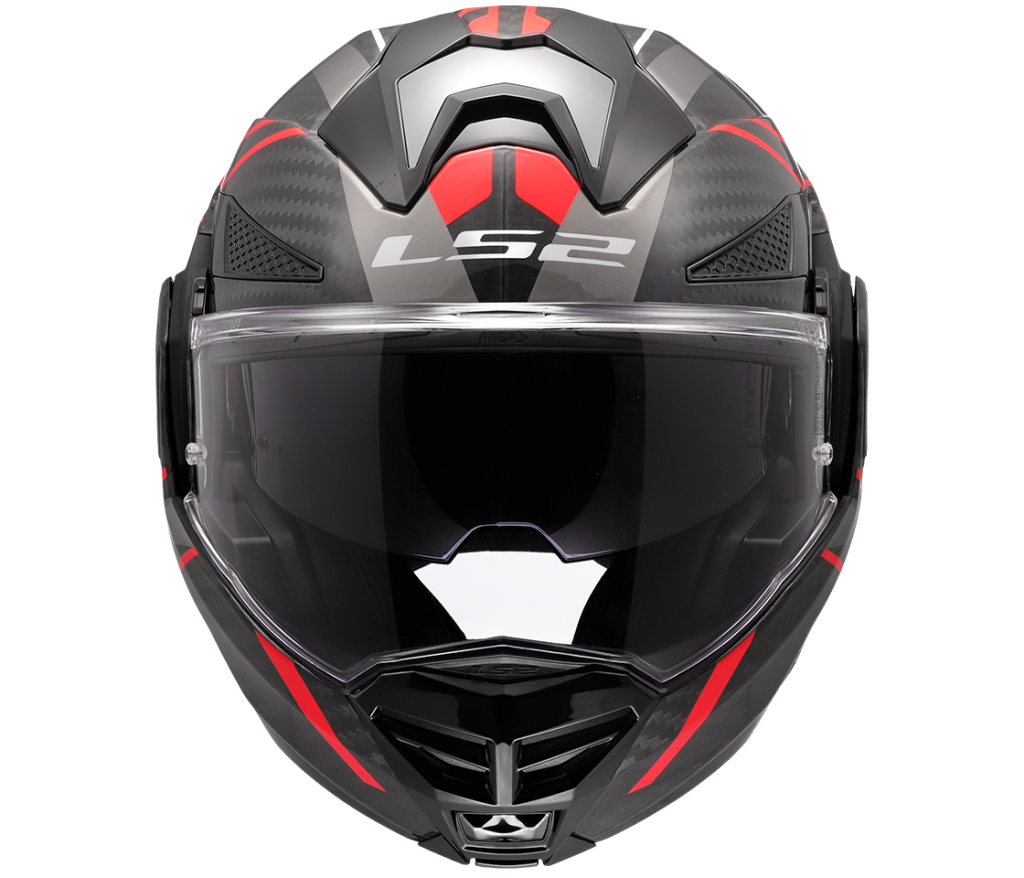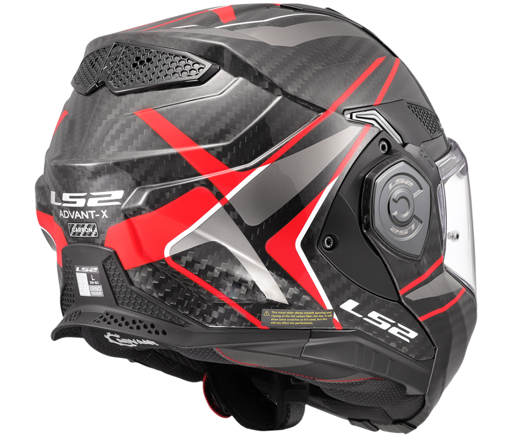 The only full carbon convertible helmet on the market! Advant-X Carbon convertible helmet is improved successor of the most successful ad best-selling LS2 Valiant II helmet. Equipped with a sun visor, Advant-X Carbon helmet is designed for medium and long distance touring, everyday and city riding. Helmet with improved ergonomics and redesigned 180-degree rotation mechanism offers superior comfort, modern technologies, advanced features and attractive design. Lightweight carbon shell provides great impact protection. Clear scratch- and UV-resistant visor is quickly removable without the need for tools. Efficient ventilation with adjustable intake ports. Hypoallergenic X-Static silver-containing interior is completely removable and washable. Extremely light weight, only 1550 g. The helmet has dual P/J ECE 22.06 homologation. Free Pinlock 70 Max Vision foil included.