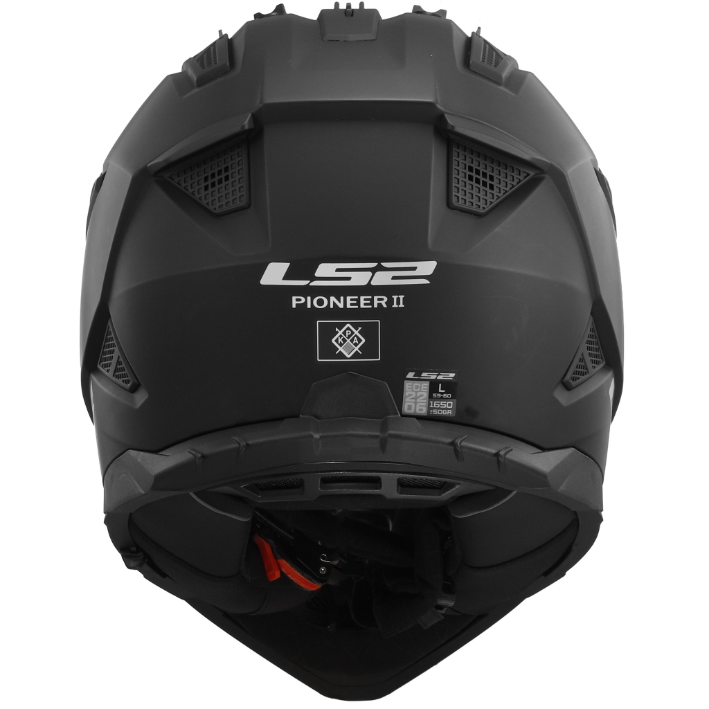 The modern MX702 Pioneer II helmet for enduro, adventure, supermoto and quad bikes offers high variability, a wide range of uses and an attractive design. Developed in collaboration with riders in the MX, enduro and supermoto world championships, the Pioneer II MX702 helmet benefits from LS2's long-standing success in top-level competition and long-distance rallies. Equipped with a Plexiglas shield, sun visor and, in addition, an integrated sun visor, it allows for a wide variability in a wide range of conditions and can be used with Plexiglas or MX goggles. The new redesigned shell compatible with modern neck protectors is made of innovative patented Kinetic Polymer Alloy (KPA) material. Redesigned more efficient ventilation and a pleasant anti-allergy fully removable and washable interior. Emergency Release System with quick release cheekpieces allows easy removal of the helmet in case of emergency. Quick fastening with steel quick release buckle.