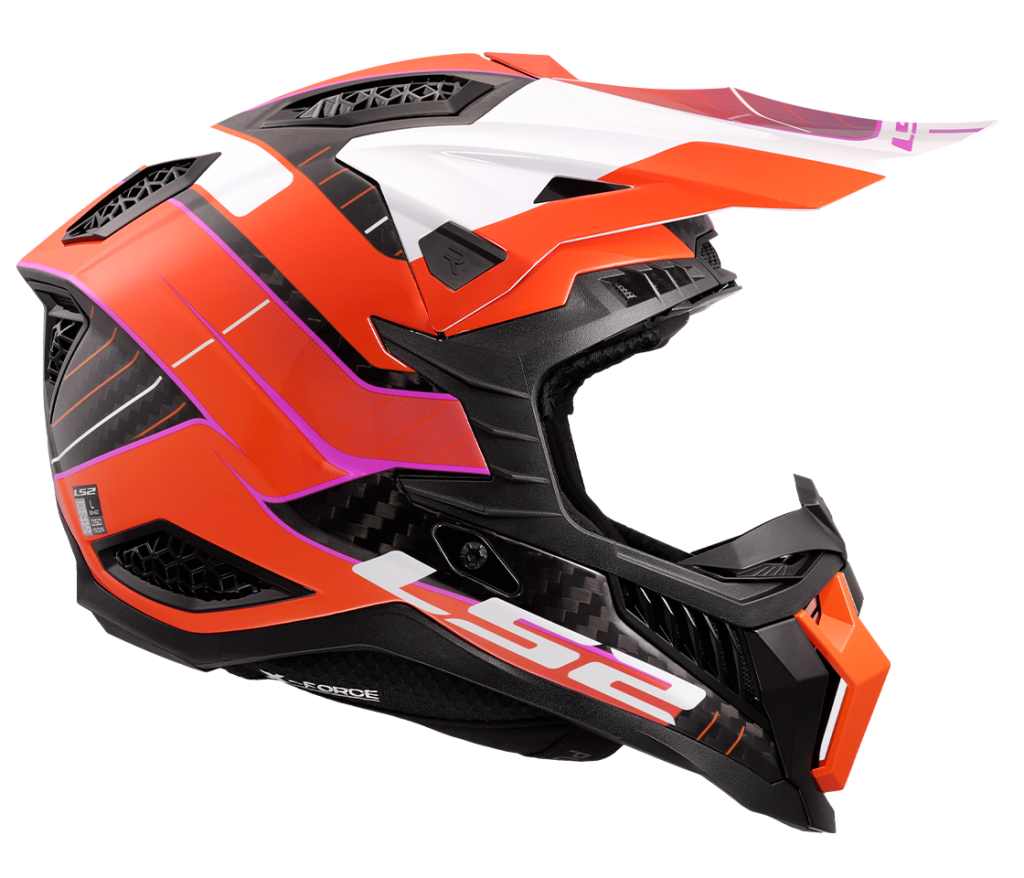 Top of the line LS2 motocross / off-road helmet, carbon shell from 6K carbon or 9K carbon, removable sun peak is length adjustable, handsfree internal drink system, antibacterial, hypoallergenic, fully removable and washable interior, fastening with high quality double D-rings, new homologation ECE 22.06, weight only 1300g