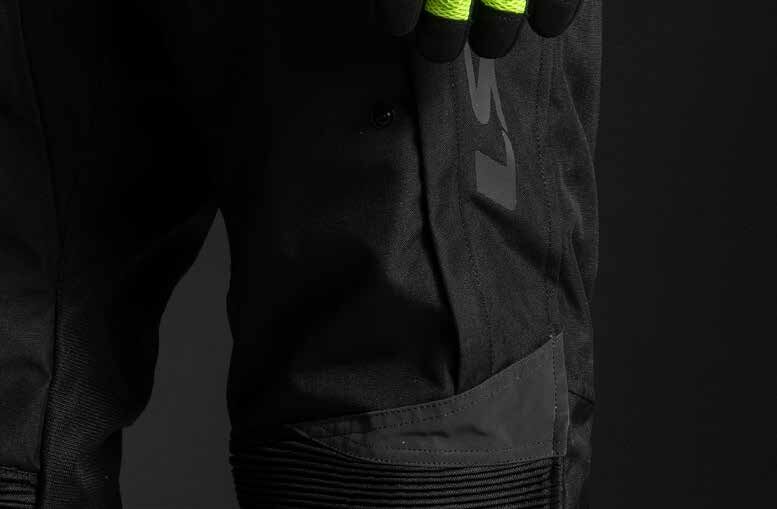 Motorcycle pants for hot, cold or wet riding packed with features such as removable breathable & waterproof membrane to keep the water out, or removable thermal lining to allow you to ride in both summer and winter months. Other features include venting zips on the thighs to increase air flow on warm days, stretch panels at the knees, back and crotch to allow free movement, CE approved pads on the hips and knees with three separate positions for the knee pads or anti-slip patch on the back.