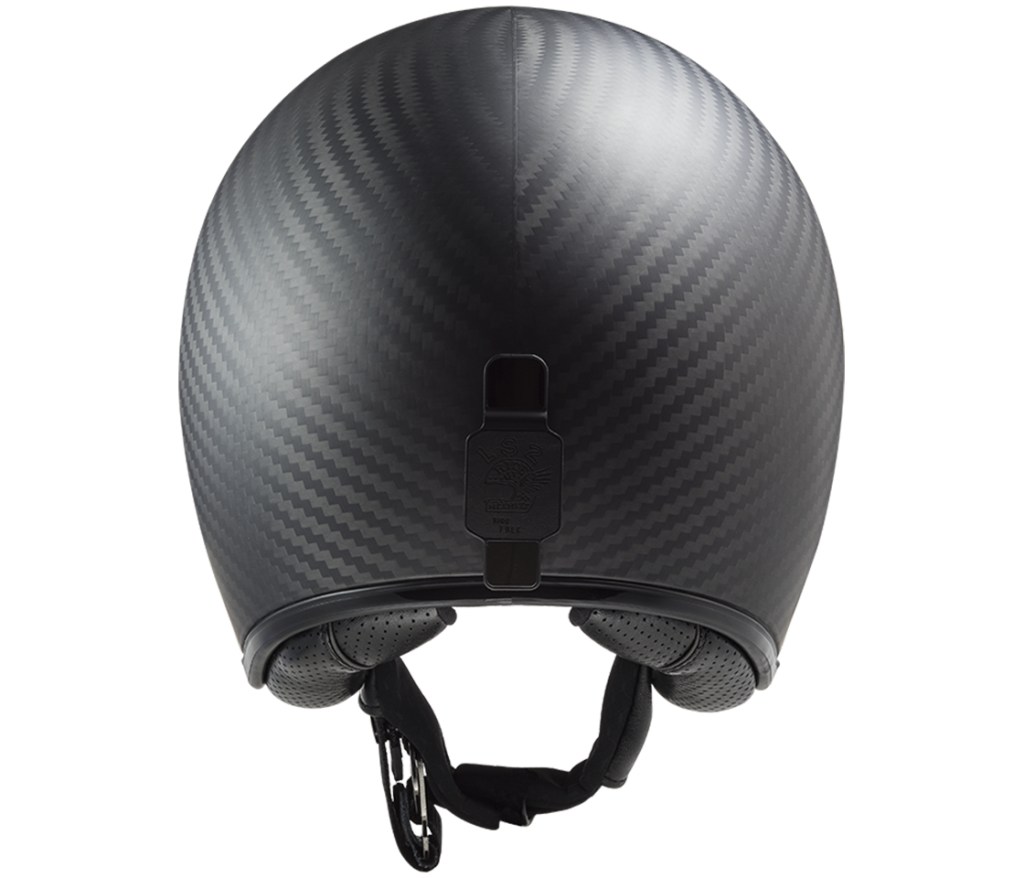 Ultimate jet helmet in an ultra fashionable neo-retro design, ideal for a trendy scooter, a custom, neo-retro or a cafe racer, for touring and urban. Extremely light full carbon fibre shell offers high level of protection with only 850 g weight. Other assets include retractable sun shield, very comfortable hypoallergenic lining, Double-D ring fastening, removable sun peak as well as a clip in the back allowing to maintain the belt of an Airman glasses for an even more asserted vintage style.