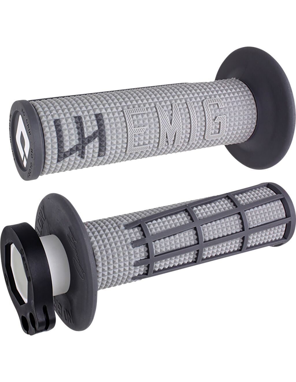 MX / enduro 4-stroke Lock-On grips, EMIG Design, Lock-On Grip System™, 100% Slip-Free, medium diameter half-waffle pattern with thumb relief, throttle tube included, interchangeable cams