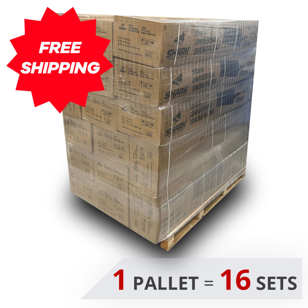 Pallet of 16 sets of SHARK ploughs 67"/170 cm for ATV/UTV + quick release adapters, Pallet dimensions: 180 x 120 x 190 cm (L x W x H), Pallet weight: 816 kg