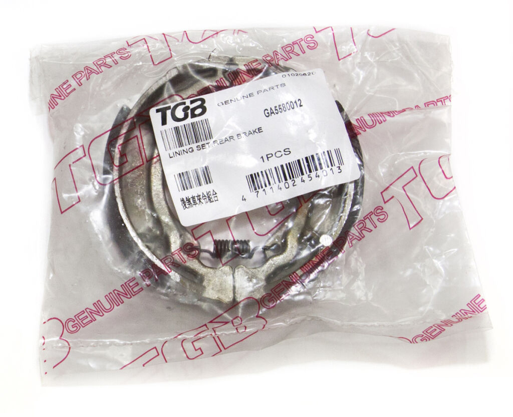 Genuine rear brake shoes with lining for TGB TAPO 50, EXPRESS 50. TGB genuine brake shoes with lining are designed for a perfect fit to each TGB model, helping to ensure balanced braking and durability. Matched to offer excellent stopping power whenever you need it.