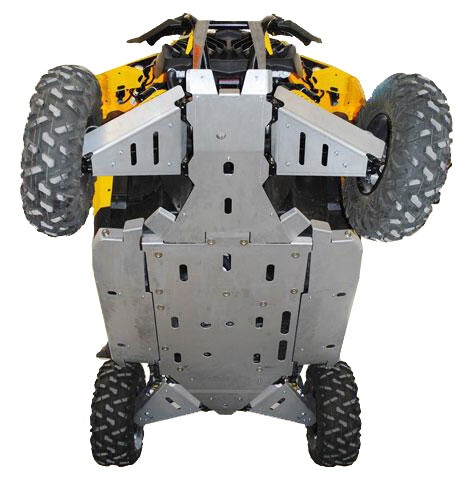 Can-Am Maverick full armor set including full frame skids, A-arm protection and lateral floor board skids. Strong light weight aluminum. Ricochet is the best selling utility skid plate line in the world.