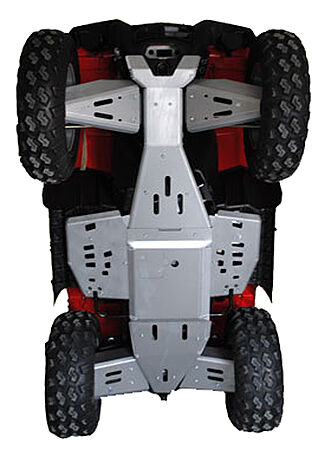 Utility ATV Full Armor Set, Frame and A-arm protection, replace stock plastic guards, inovative boot protection, Full Frame Skids from 4,80 mm 5052-H32 Aluminum, A-Arms from 4,00 mm 5052-H32 Aluminum, access holes and cutouts, zinc plated T40 torx bolts