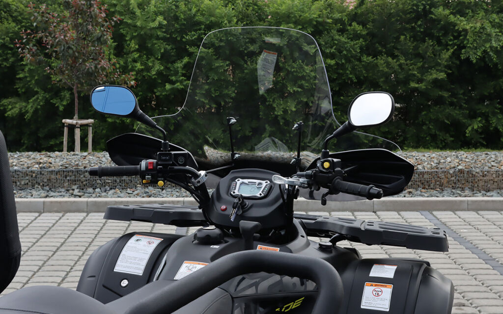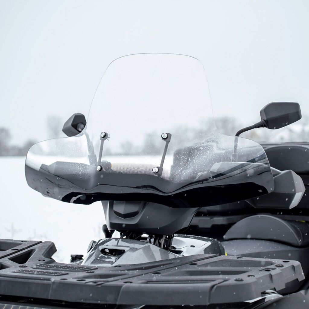 Large ATV windshield for bigger Utility ATVs, protects rider from wind, mud, cold and other elements, universal mounting system