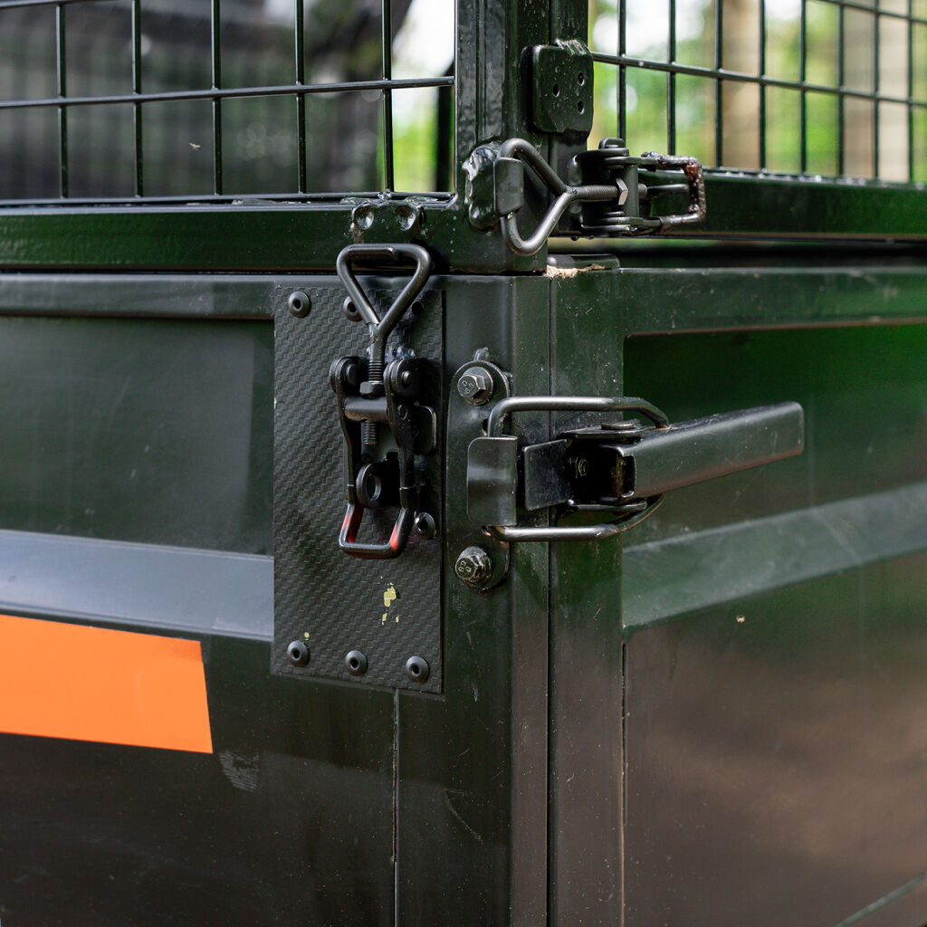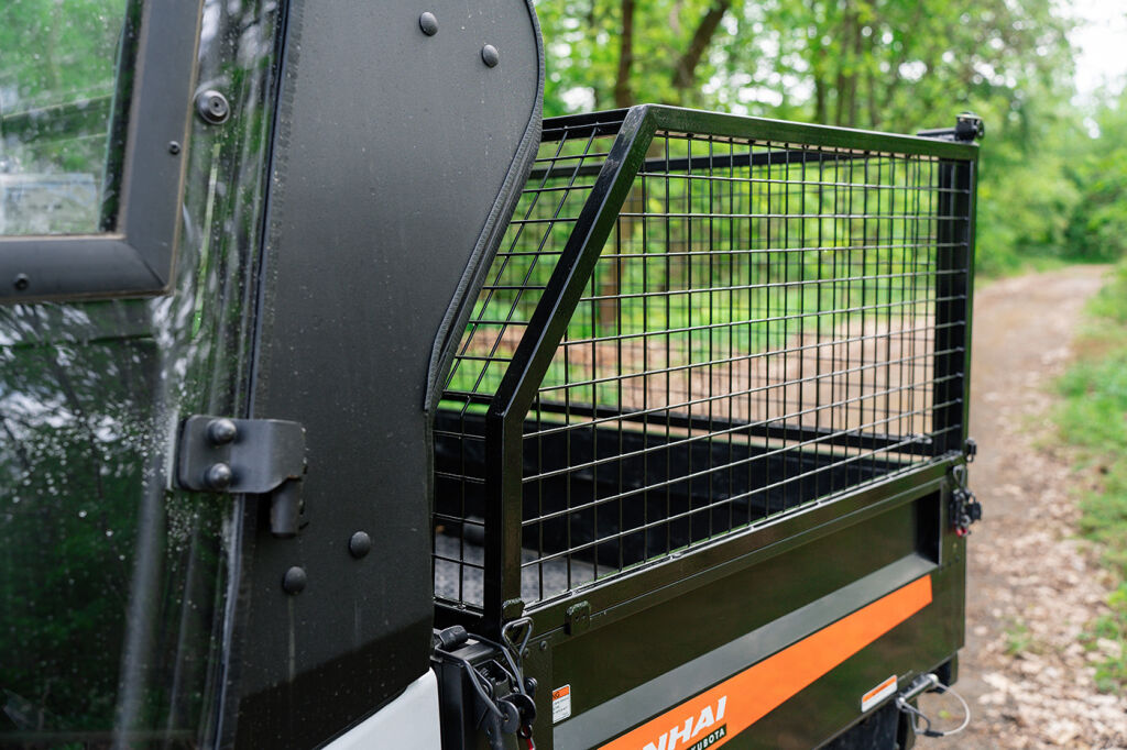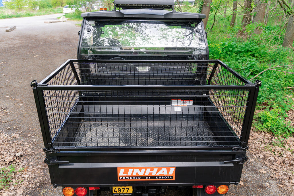 Raised side rails for LINHAI UTV 1100 DIESEL, height 50 cm, rear opening with top hinges for easy emptying of cargo, finish: black powder coating"