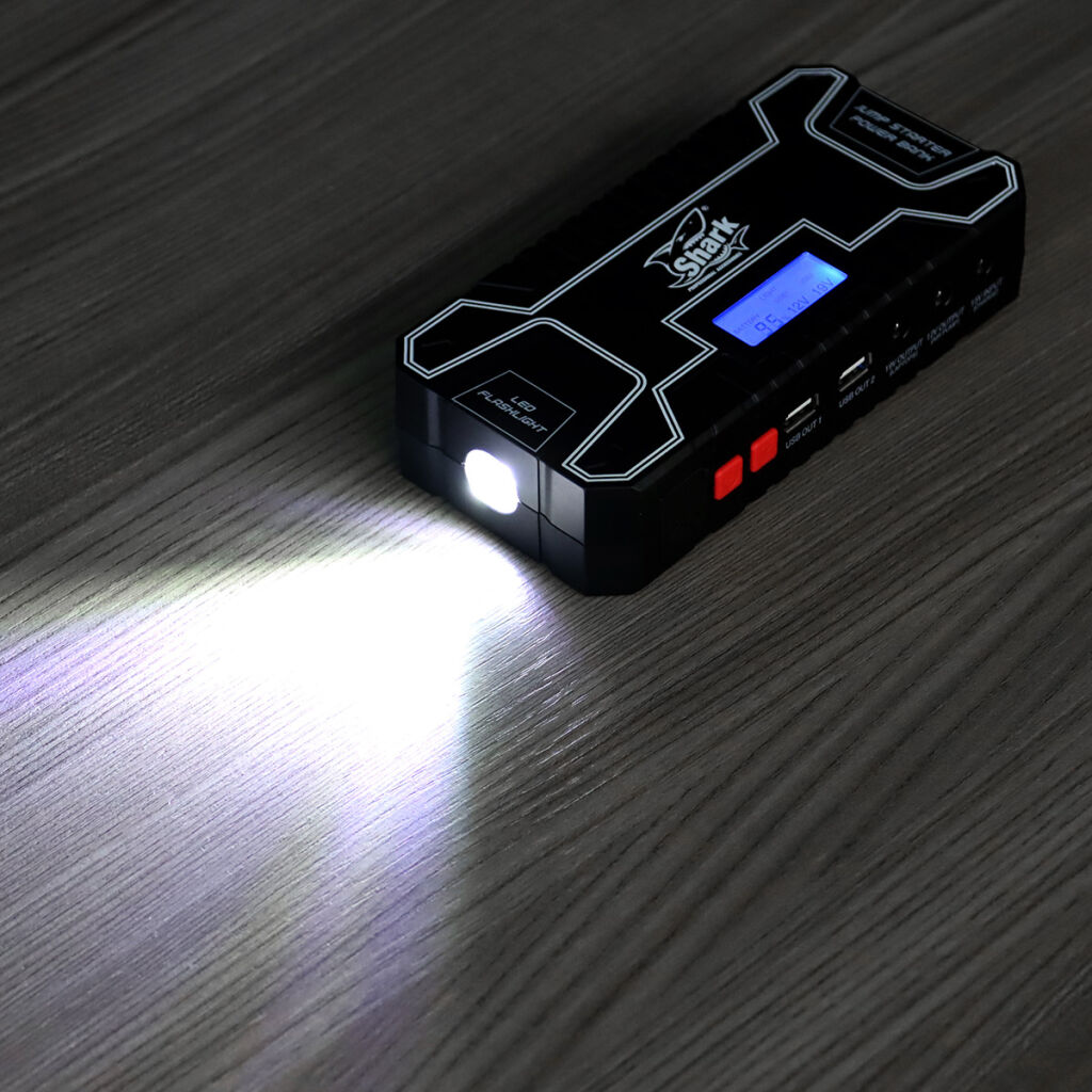 Never again will you get stuck with a dead battery in the morning - Shark EPS-400 Jump Starter is here to help with your flat battery. Sleek compact design makes the EPS-400 highly portable so you can take it along with you in case of need. Enough power for up to 30 engine starts if fully charged. Another function is a powerful large-capacity power bank for mobile devices such as mobile phones, PDAs, notebooks, MP3 players, GPS and other devices. Stored energy can also be used to run various 12V appliances such as car refrigerators, car vacuum cleaners, air compressors, powerful heaters and cookers. The EPS-400 is equipped with USB power output and 12V DC power output, LED flashlight.