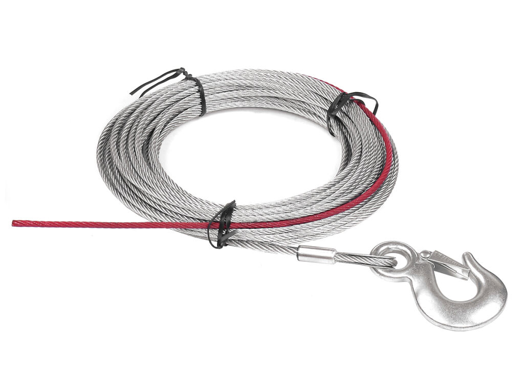 High-strength steel rope for COMEUP Cub 3 ATV Winch, with hook, fitted with stopper. Hook at one end, the other end is fitted with wire crimp end.