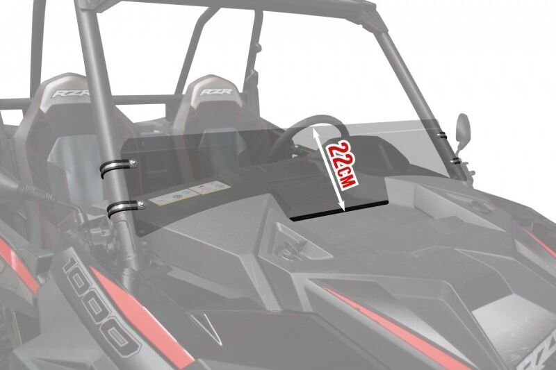 Half windshield for Side-by-sides, top quality, from 6mm impact resistant polycarbonate, self-extinguishing, non-toxic, clear